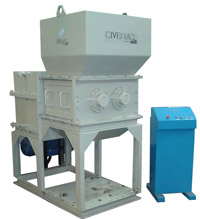 - Cámara de triturado de doble árbol diferencial contra rotante de gran robustez, conducido por un reductor a engranajes de altas prestaciones y gran servicio.